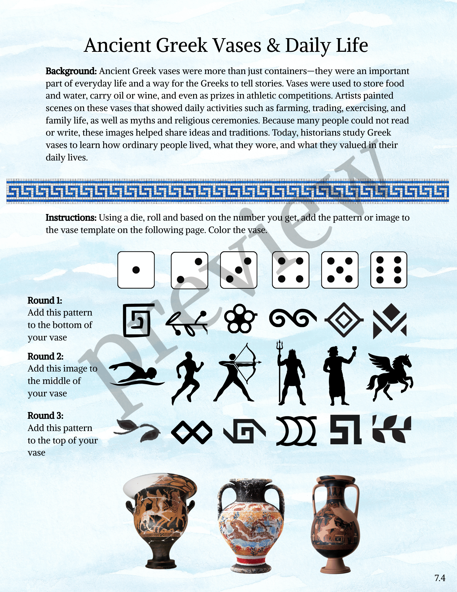 Students read engaging informational articles, complete hands-on projects, build a cumulative timeline, analyze primary sources, and take short quizzes — all with minimal prep for parents.