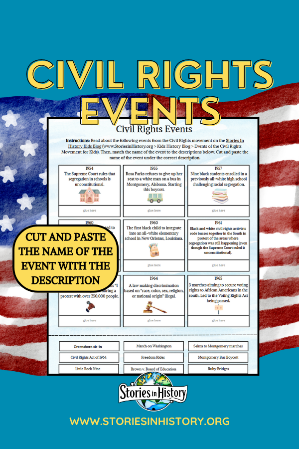 💡 Bonus Resource: Pair this worksheet with our free blog post “Events of the Civil Rights Movement for Kids” on storiesinhistory.org for added context and reading support.