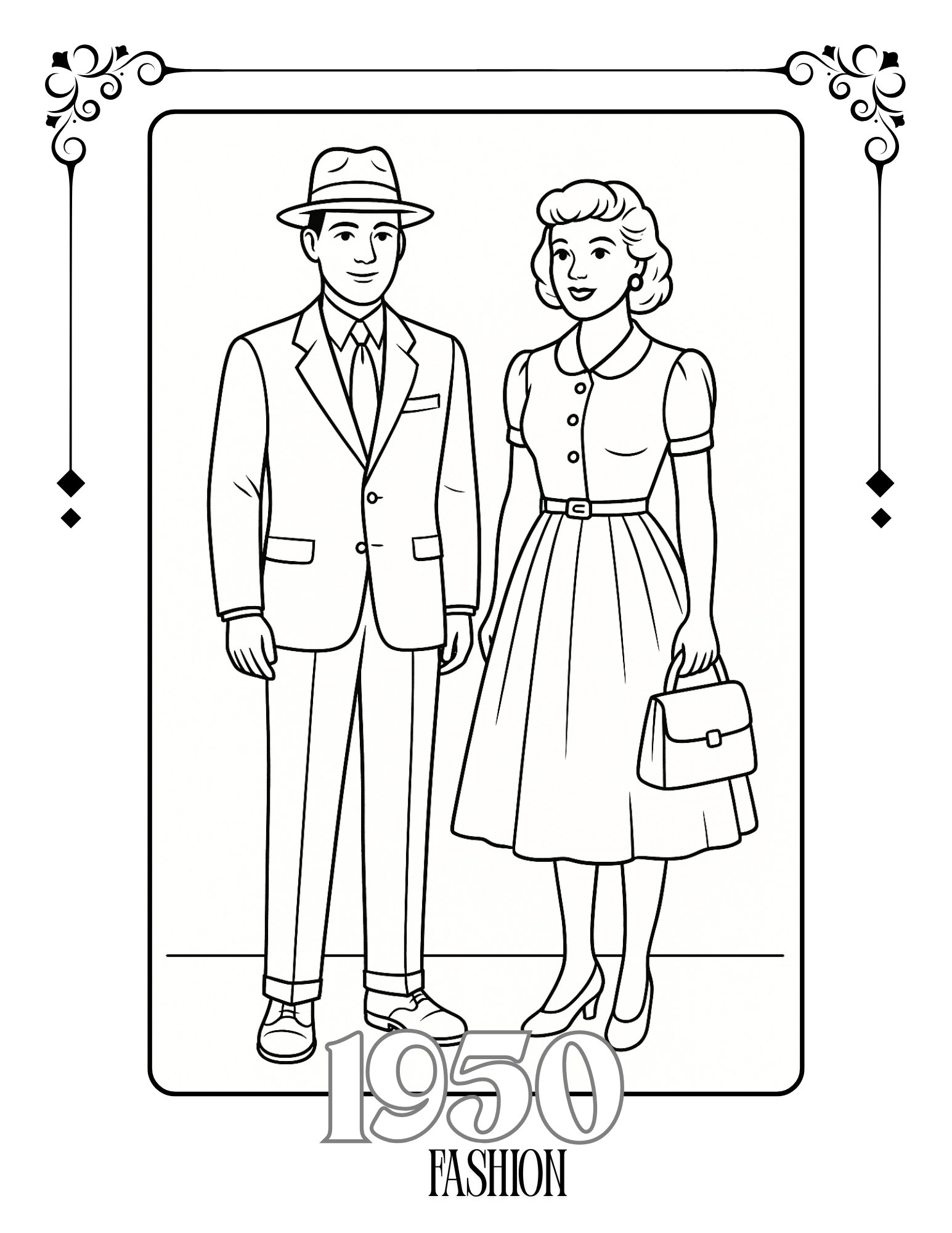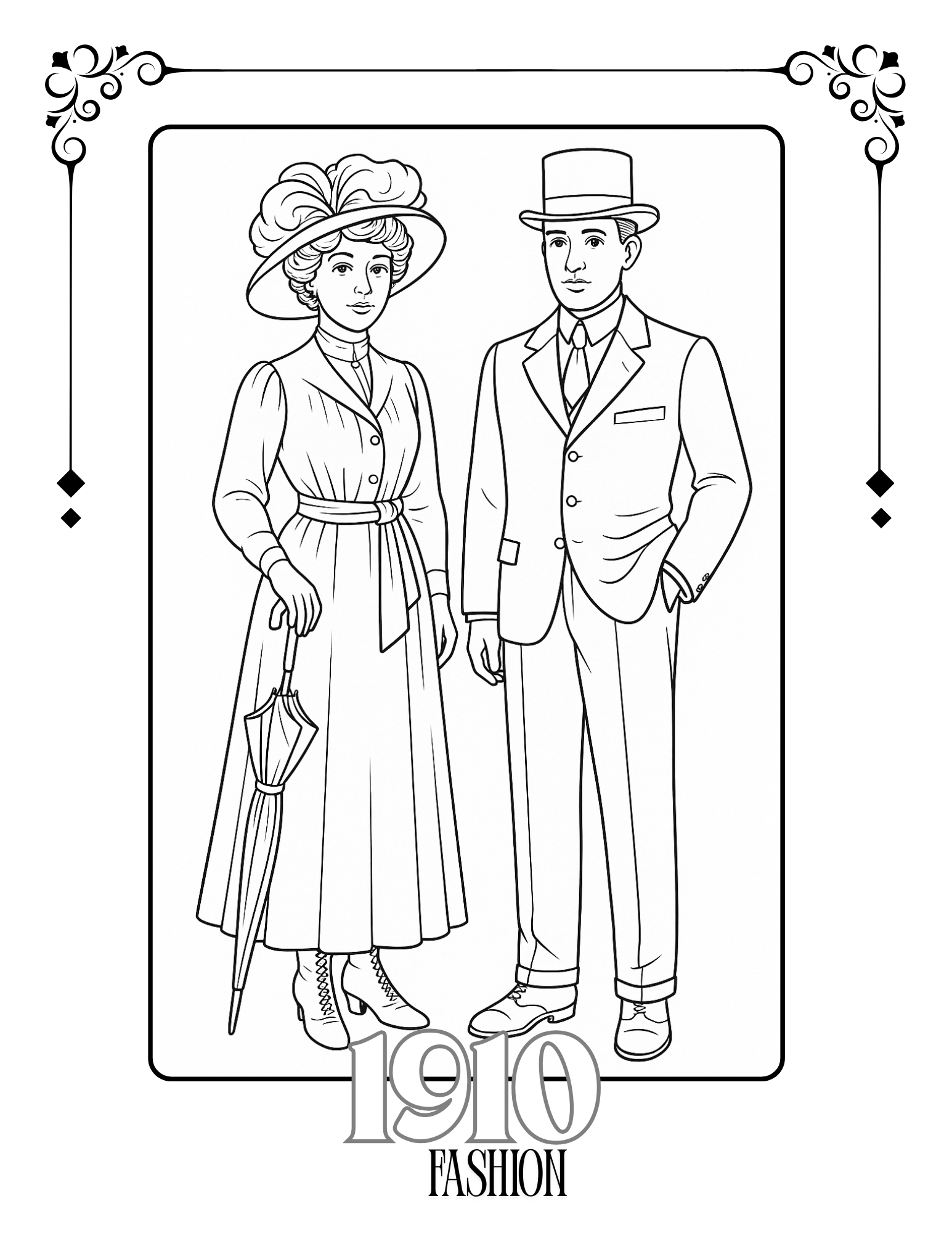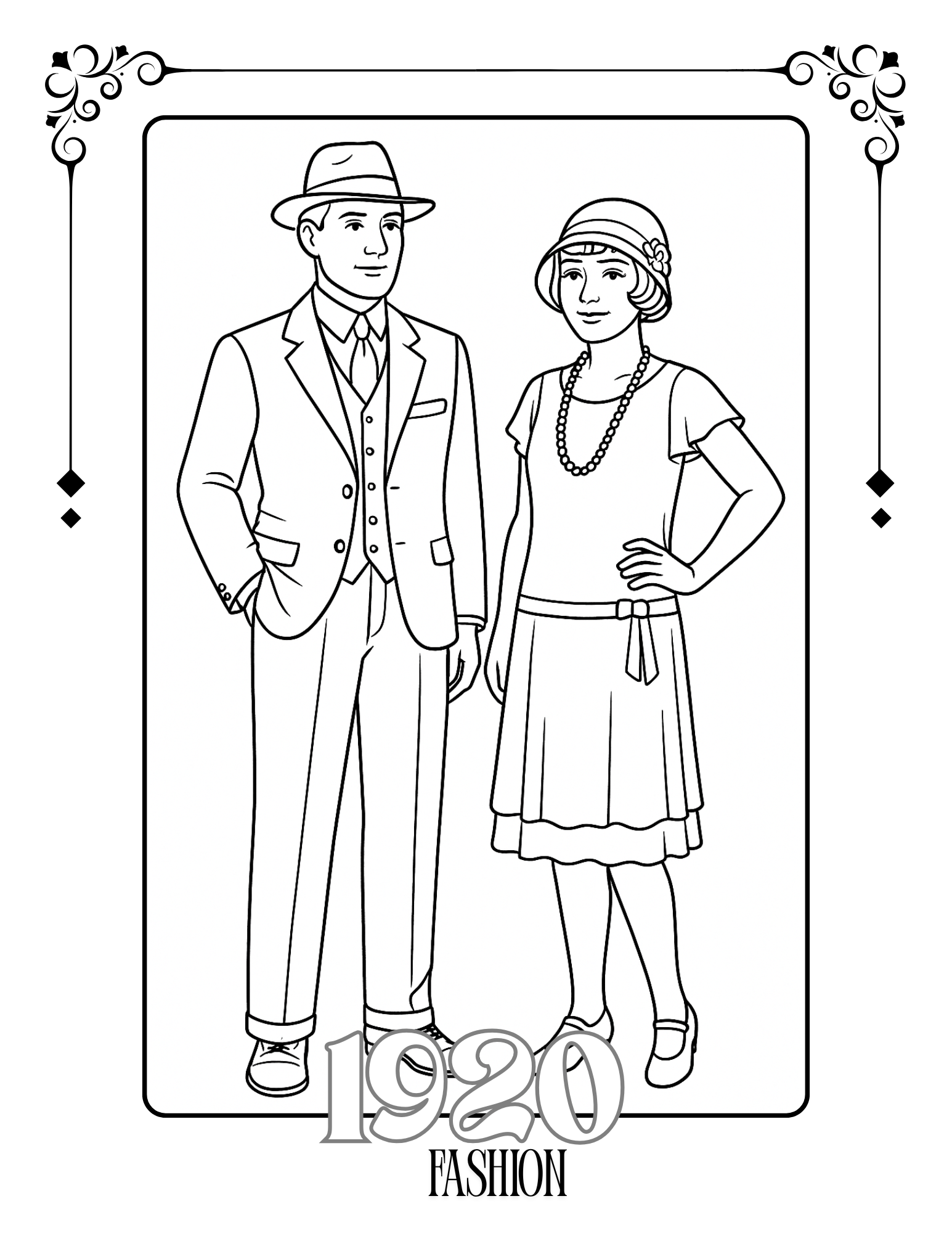 Enjoy 6 coloring pages of typical fashion from 1910-1960 plus 6 worksheets from each decade to go with it. Great for studying fashion history or pairing with our Modern American History full-year curriculum for your young fashionistas. All ages. Kids can learn more on our blog post Kids History Blog: Fashion Through the Decades 1910 to 1960.